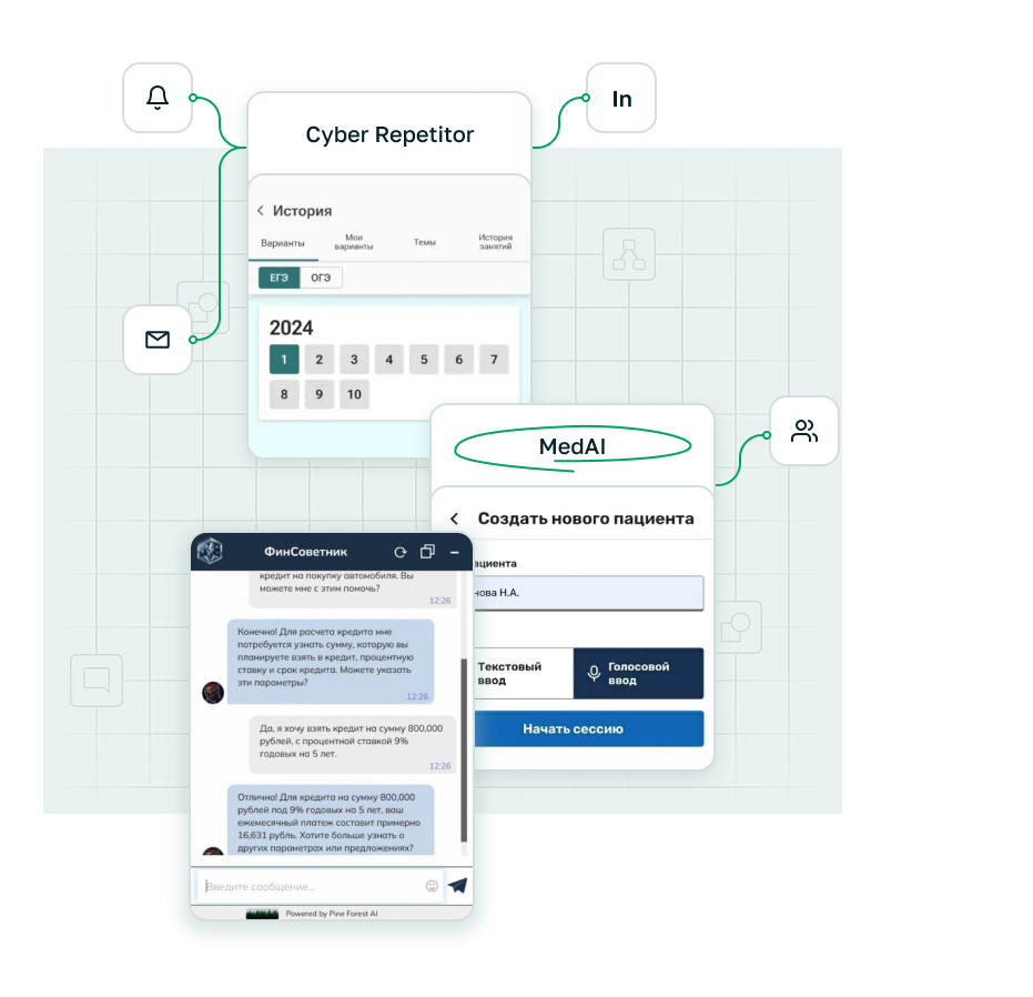 Реализуем агентов, подключаем к вашим CRM/БД/API...